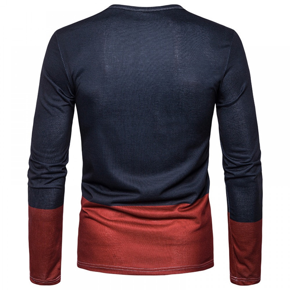 Men's Large Size 3D Blue Pattern Printing High Neck Long Sleeve T-Shirt Bottoming Shirt