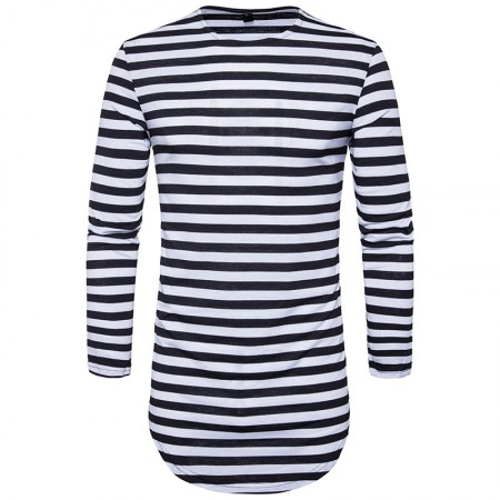 Hip-Hop High Street Summer Men's Round Hem High Street Striped Long T-Shirt