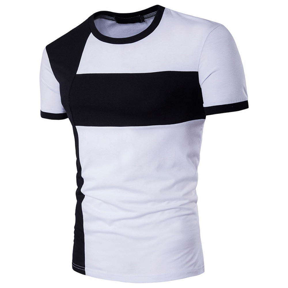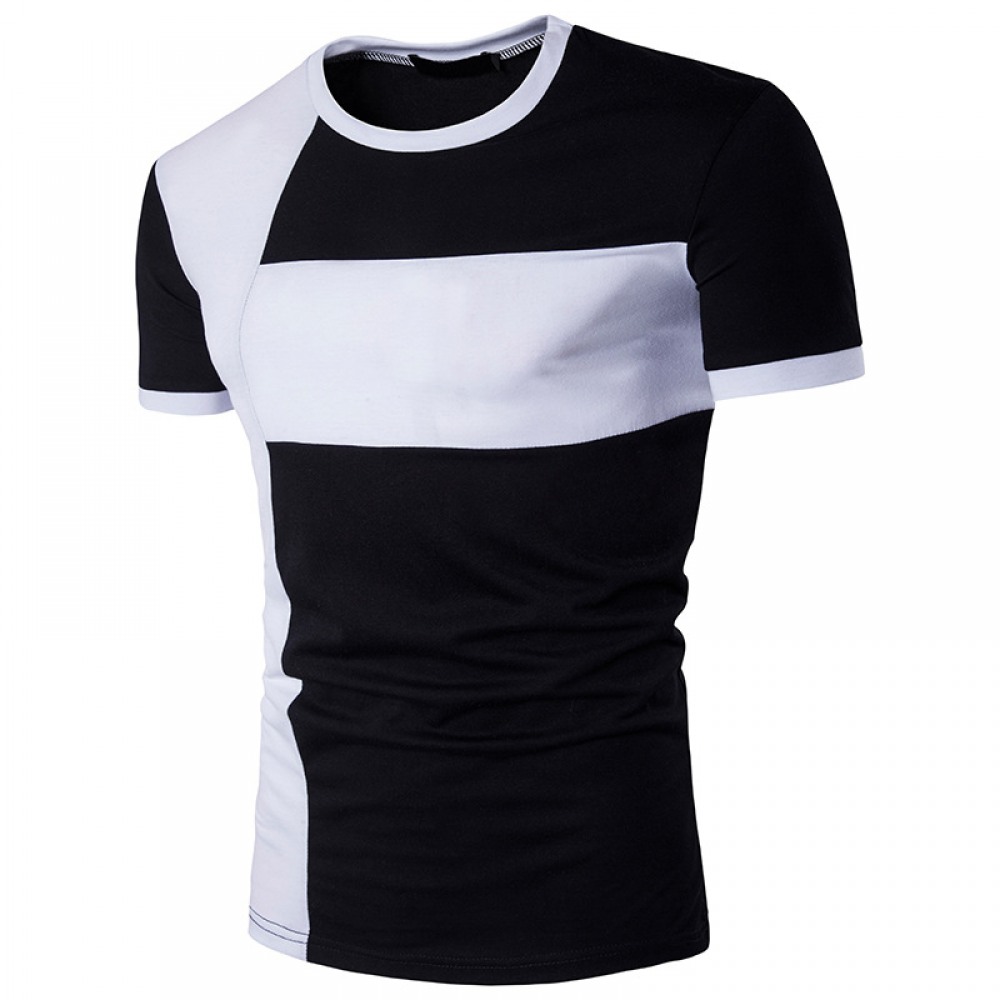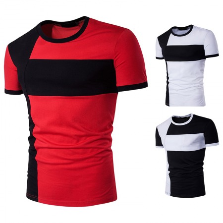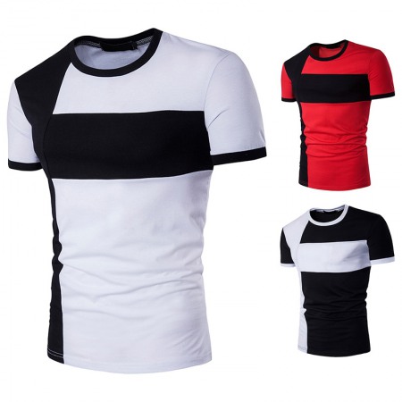 New Summer Men's Short-Sleeved T-Shirt Men's Contrast Striped Slim Casual T-Shirt
