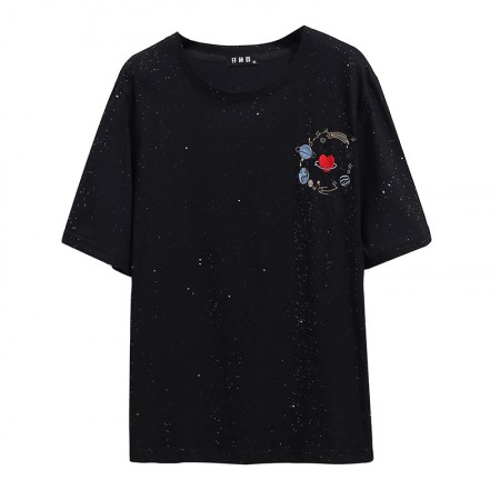 Round Neck Fat Sequined Top New Oversized Women's Loose Embroidered Short-Sleeved T-Shirt