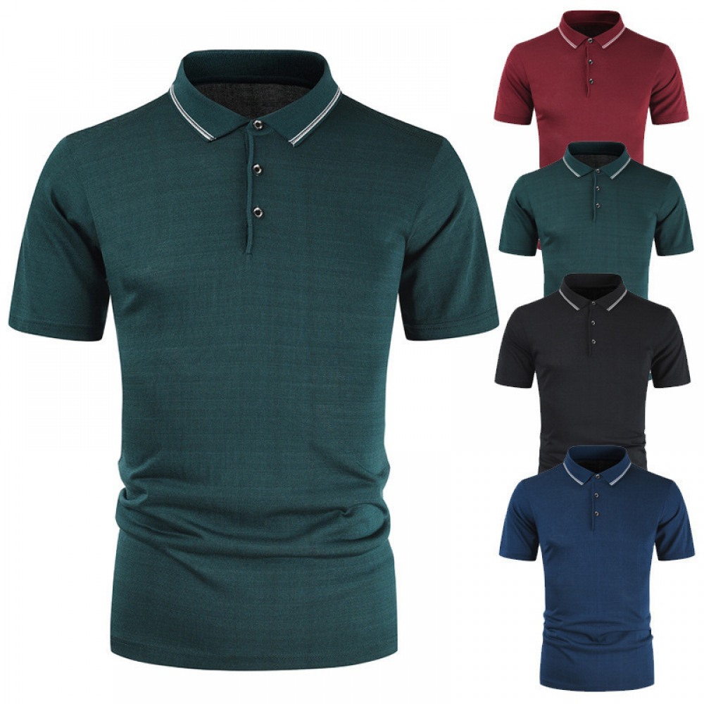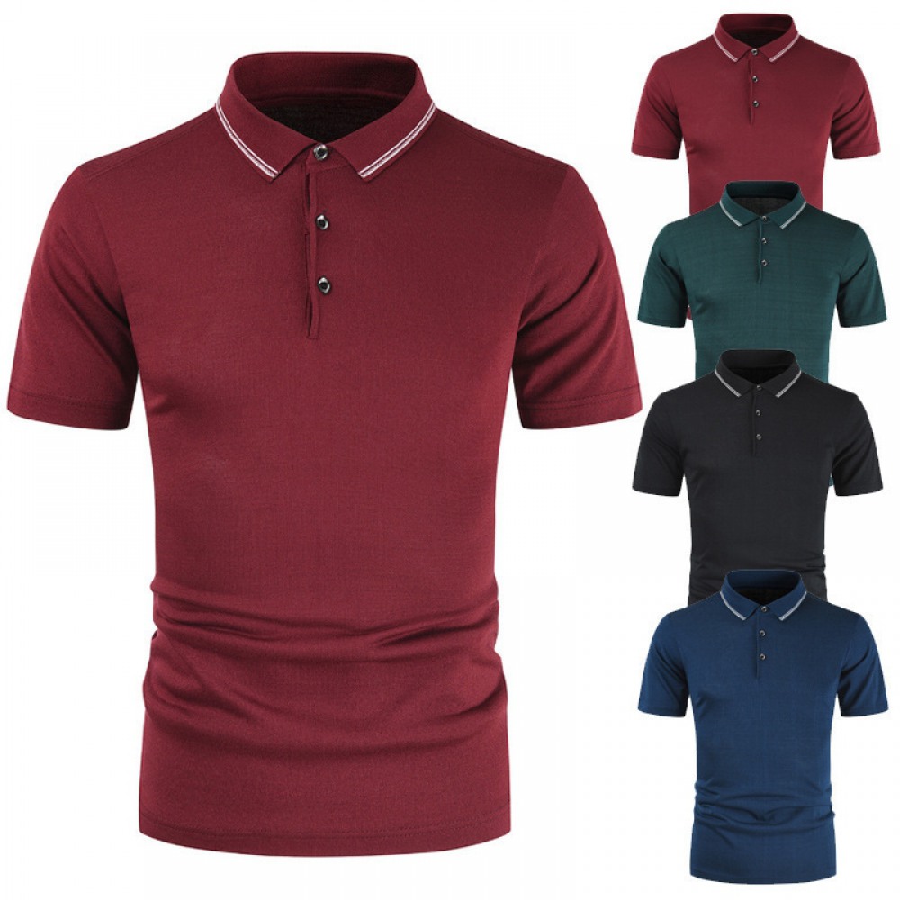 Short-Sleeved Men's Plus Size Short-Sleeved T-Shirt Lapel Color Matching Bottoming Shirt